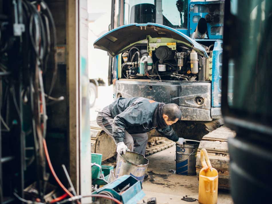 修理に関しては、当社でご購入いただいていない製品にも対応可能。定期的なメンテナンスを通じて、機械の性能を保ち、現場の安全性を守るサポートを行っています。機械のプロフェッショナルとして、“現場で止まらない”安心を届け続けることが、私たちの誇りです。